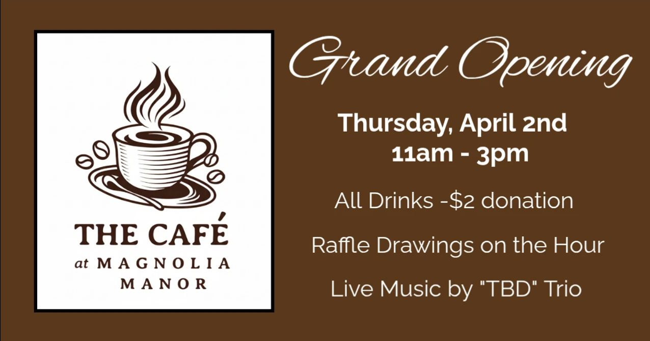After their soft launch period, The Café Club will officially open The Café at Magnolia Manor!